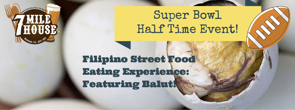 Sunday, February 7, 2016 “Filipino Street Food Experience and Half Time Show” - It's game day and the real halftime show is happening at 7 Mile House with the ultimate ‘Filipino Street Food Experience featuring Balut’! Balut is a developing duck embryo that is boiled and eaten in the shell (not to mention the perfect snack to indulge in with local craft beer on tap). Everyone is encouraged to try what Andrew Zimmern (Bizarre Foods) claims to be one of the strangest foods he has ever eaten in his life! To encourage first-time Balut eaters, 7 Mile House is offering a pitcher of any draft beer on the house to those who finish the meal.